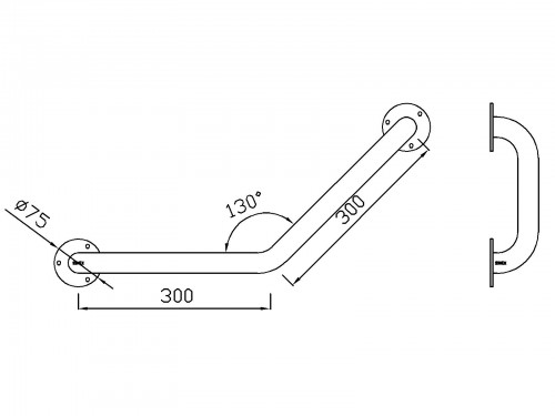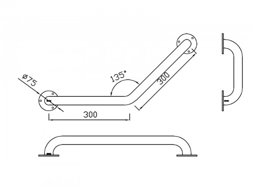 IT B3030B is a 135° angled grab bar which is a very useful and highly reccomended accessory for the accessible toilets, showers and bathrooms. This grab bar makes the daily lifemanagement of not only the disabled and elderly people easier but it is a great help for everybody who needs some kind of support with moving. In case you have any wishes or requests regarding shape or dimension please do not hesitate to contact us so that we can manufacture accordingly.