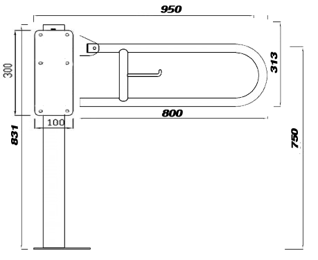 IT BA70CB, 700mm folding grab bar which can be fixed to the ground. It is highly reccommended for accessibility provision in toilets, bathrooms, showers as a useful accessory item. This grab bar makes the daily lifemanagement of not only the disabled and elderly people easier but it is a great support for everybody who needs help with moving. In case you have ny wishes or requests regarding shape and/or dimension please do not hesitate to contact us so that we can manufacture accordingly.