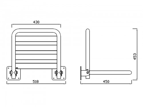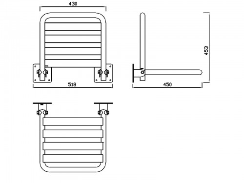 The wall-mounted, folding shower seat is made of stainless steel. This sanitary accessory is developed for disabled and elderly people. The corrosion-resistant coating of the 32mm diameter and 1,5mm thick tubes is ensuring long lasting usage of the seat with its 120 kg capacity feature.