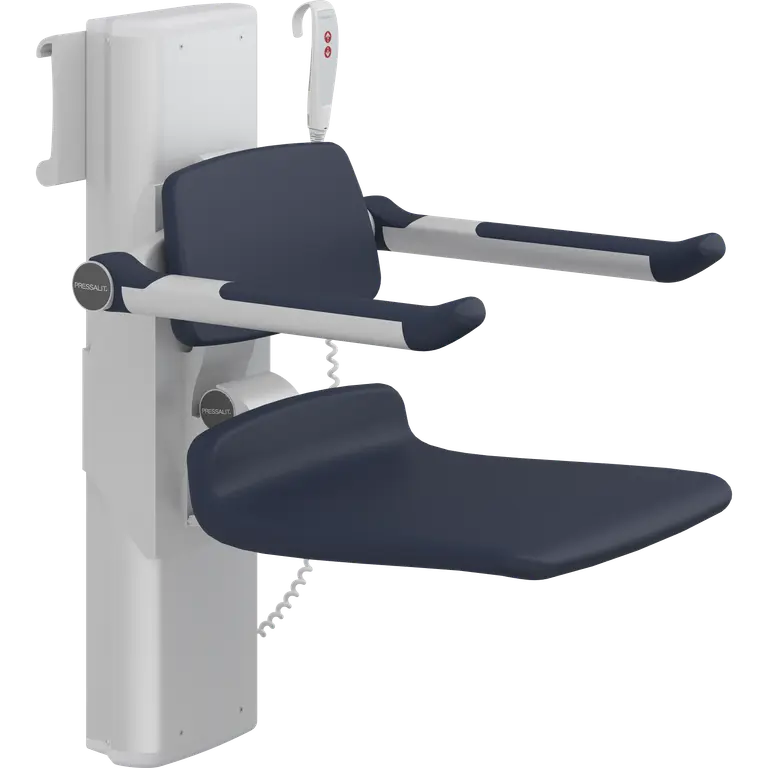 PLUS shower seats are available in a range of colours. They are available in fixed height, electrically and manually adjustable, with or without opening, with two seat lengths and with back and armrests.