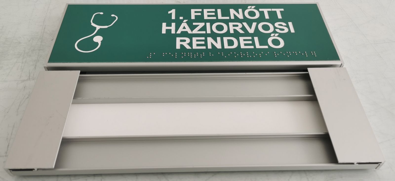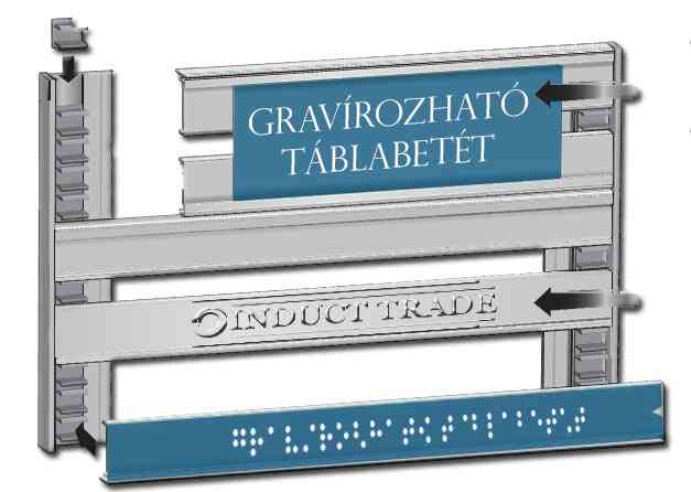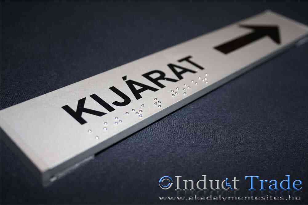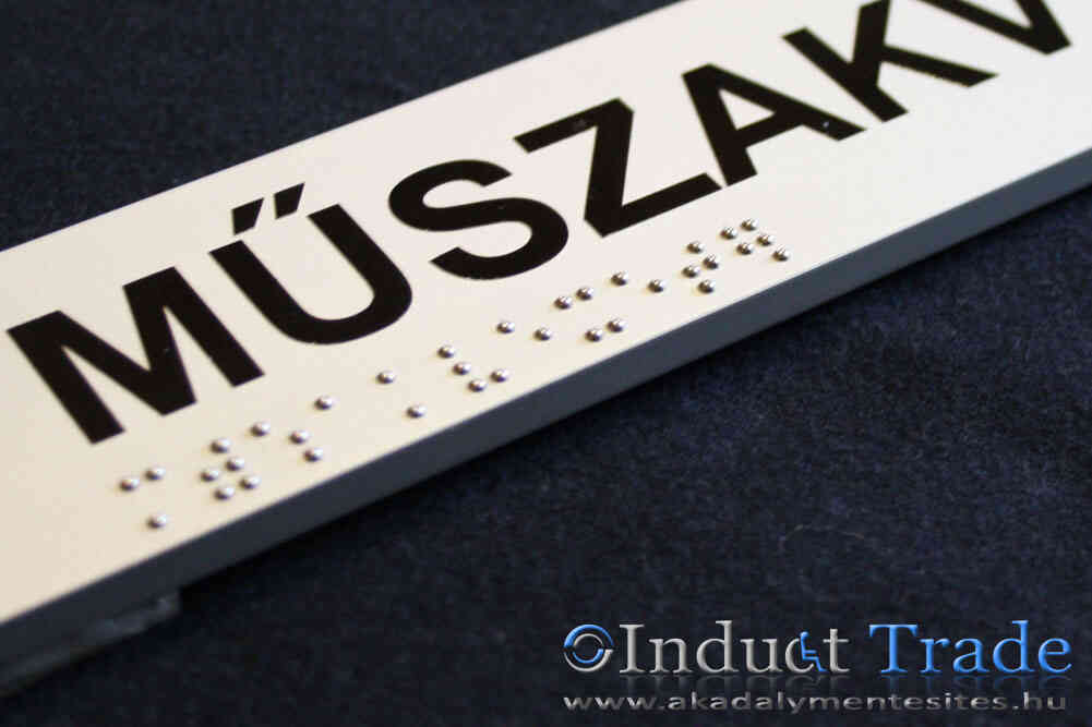 Aluminum profiled information board, with laminated text and with implanted Braille characters made of steel balls.