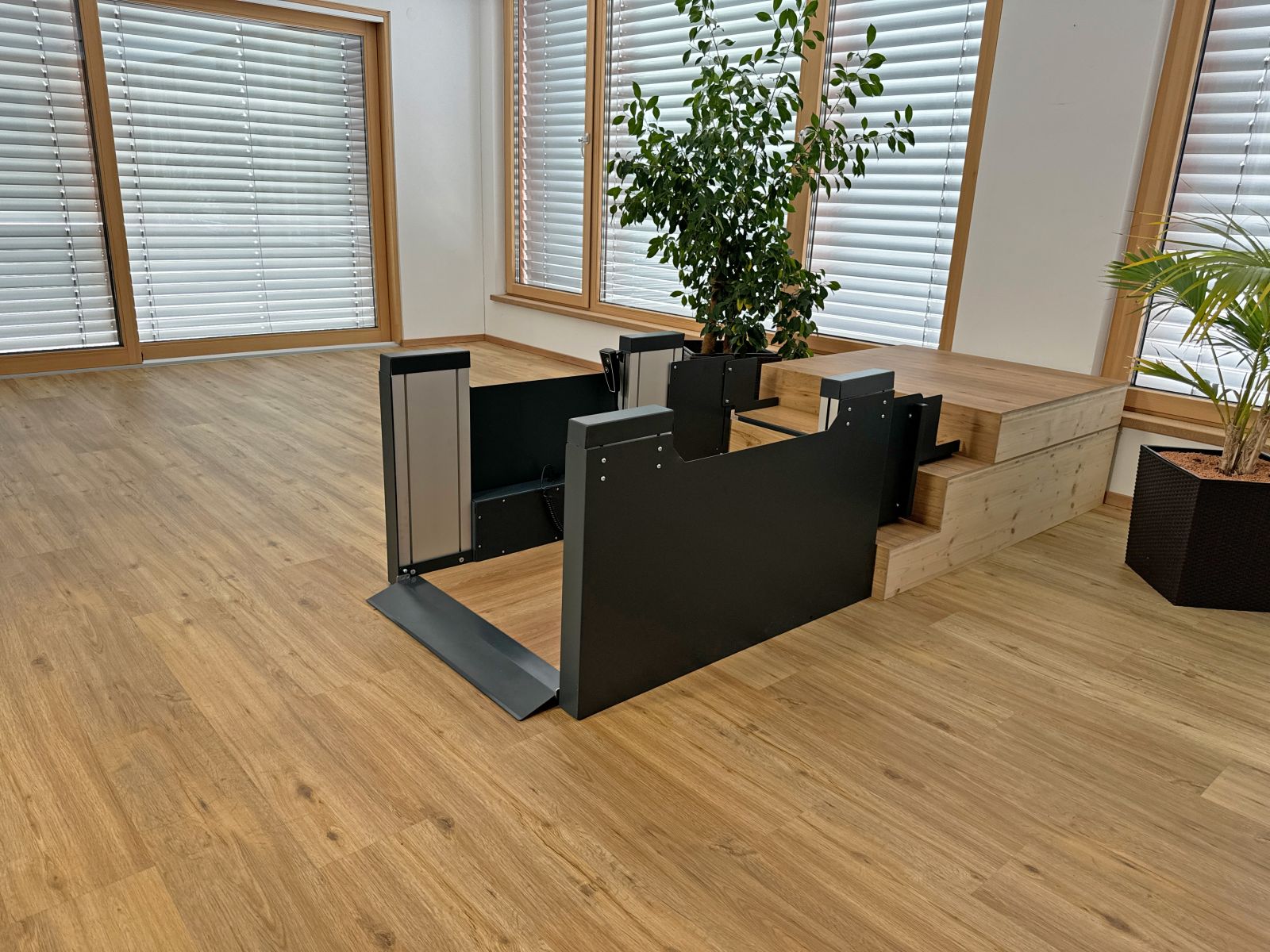 *Az alapértelmezett platform csúszásmentes PVC padlóval rendelkezik, ugyanakkor a padlóburkolat helyszíni igény szerint testreszaható, így még jobban illeszkedik a meglévő környezethez.