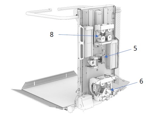 A platform fel és le gombokkal, valamint vészleállító és riasztó gombbal van felszerelve. Minden megállóhoz vezeték nélküli vezérlőállomás (falra szerelhető vagy hordozható) tartozik, amely a liftet a megállókból hívja és küldi el.