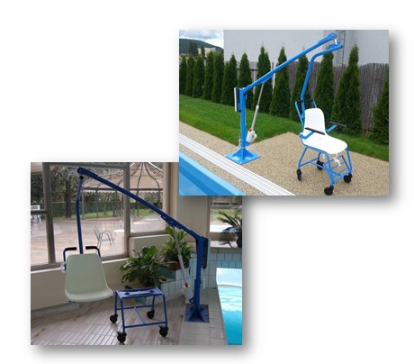 Az F145B alacsony oszlopos változat, amely egy ülést és egy kerekes szállítókocsit tartalmaz, amely lehetővé teszi a felhasználó kényelmes szállítását a medence és az öltöző között. A 3600-ban forgatható medencelift kiváló manőverezhetőséget biztosít szűkebb térben is.