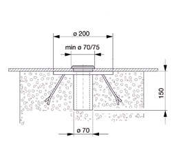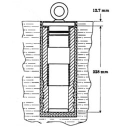 - Földbe süllyesztett 60 x 60 x 60 cm-es betonblokkba integrált lemezzel