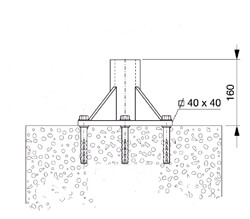 - Felületi rögzítés 40 x 40 cm-es lemezzel 60 x 60 x 60 cm-es betonblokkon