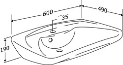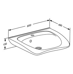 MATRIX CURVE II ergonomikus mosdókagyló, 600 x 487 x 150 mm, Ø36 mm-es csapfurattal és túlfolyóval.