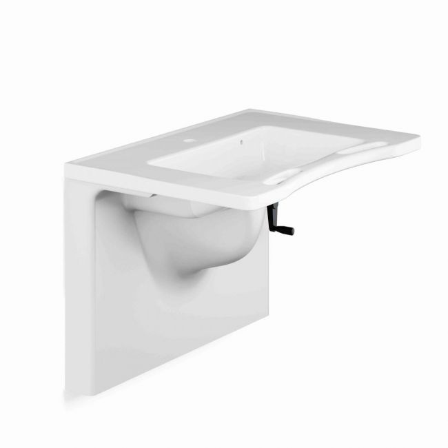 MATRIX MEDIUM mosdókagyló, 780 x 550 x 165 mm, elöl két beépített kapaszkodóval, Ø36 mm-es csapfurattal és túlfolyóval. Kezelőgombok az elülső szélen (az elektronikával rendelkező változatnál). A lefolyószerelvényt külön kell megvásárolni. A mosdókagyló megemelt peremmel rendelkezik, amely megakadályozza, hogy a víz a hátoldalon vagy a külső oldalakon lefolyjon.