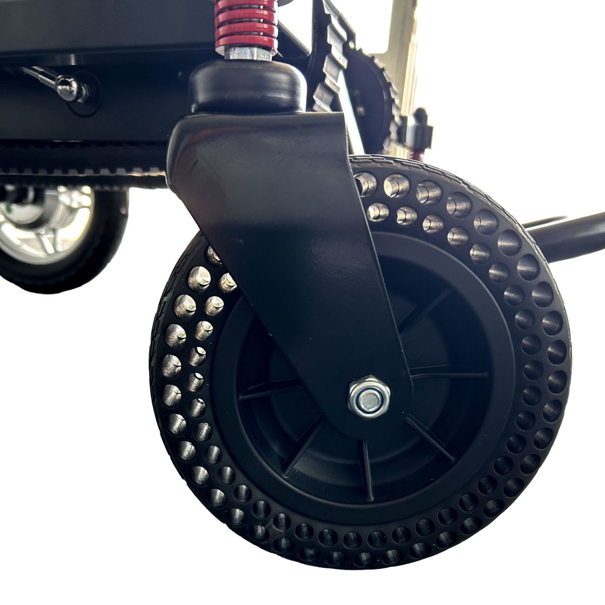 A készülék hernyótalpas rendszerrel működik, amely szilárdan felfekszik két lépcsőfokra, ezzel biztosítva a csúszásmentes, stabil közlekedést felfelé és lefelé is.