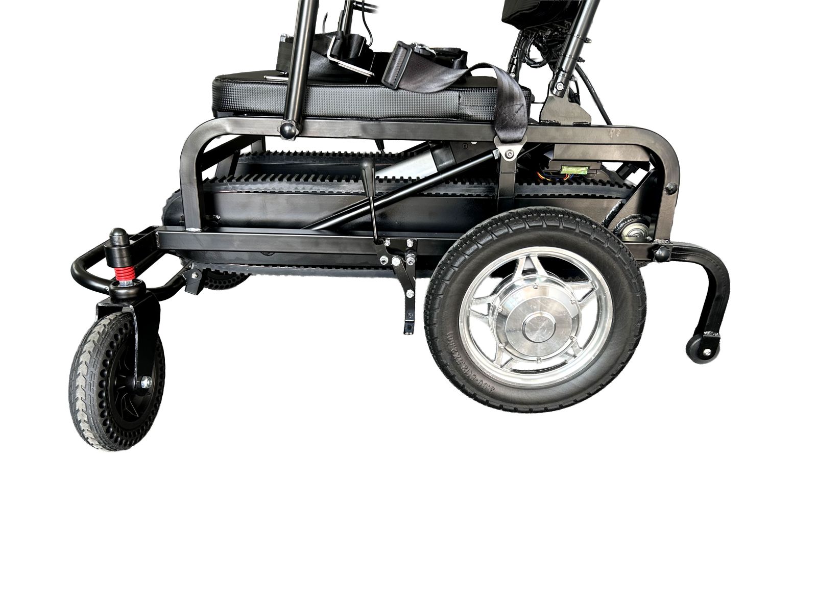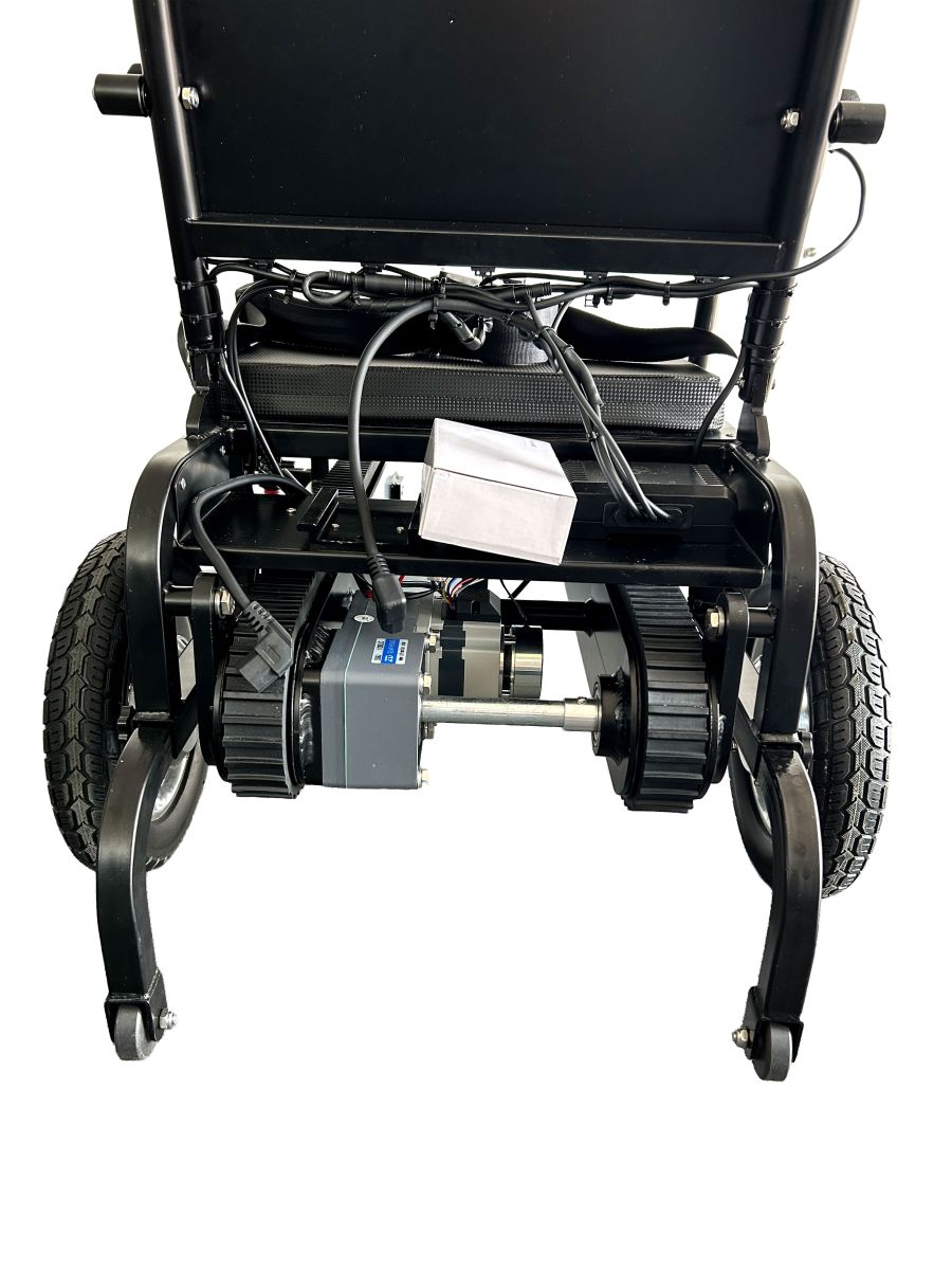 A készülék beépített hernyótalpas lánctalpas rendszerrel rendelkezik, amely lehetővé teszi a lépcsőkön történő stabil, csúszásmentes mozgást. A technológia lényege, hogy a lánctalpak folyamatos kontaktusban maradnak a lépcsőfokokkal, így kiküszöbölik a kézi emelés szükségességét. Ennek köszönhetően a beteg vagy a felhasználó maximális biztonságban mozoghat lefelé vagy felfelé.