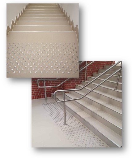 A taktilis jelzést a jelölendő veszélyforrás előtt biztonságos távolságban kell elhelyezni, lépcső elé illetve információs pultok elé.