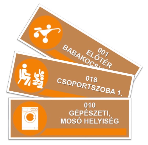 A táblák kialakításakor felkínáljuk az adott funkció jellegéhez tartozó vagy alkalmazható piktogramot, de egyedi fotót, logót, képet is elhelyezhetünk a táblán.