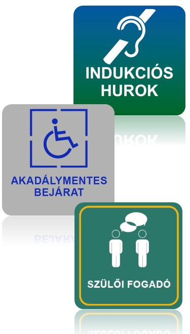 A táblák kialakításakor felkínáljuk az adott funkció jellegéhez tartozó vagy alkalmazható piktogramot, de egyedi fotót, logót, képet is elhelyezhetünk a táblán.