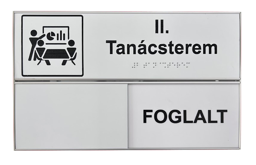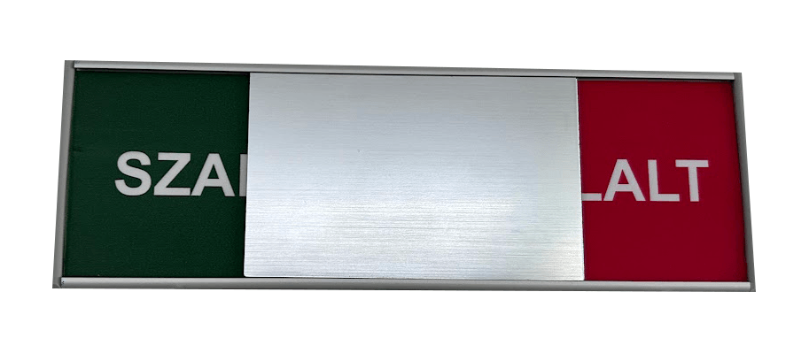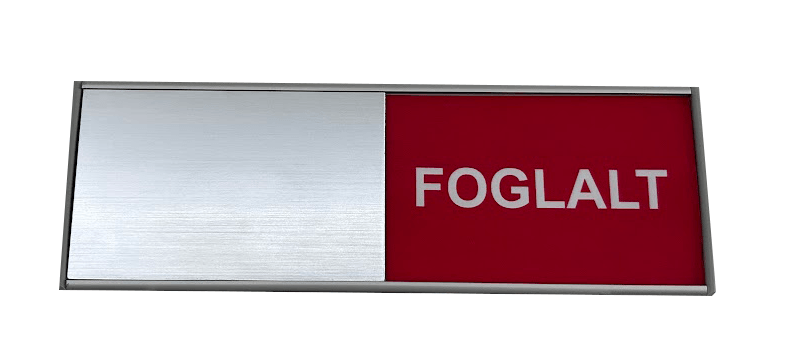 Ez a ítpusú foglalt/szabad jelző tábla nemcsak praktikus, hanem professzionális megjelenést is biztosít. Az aluminium profil garantálja a tartósságot, míg az egyedi gyártási lehetőségek révén teljes mértékben az Ön vállalati arculatához igazítható.