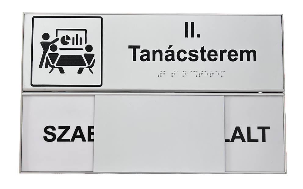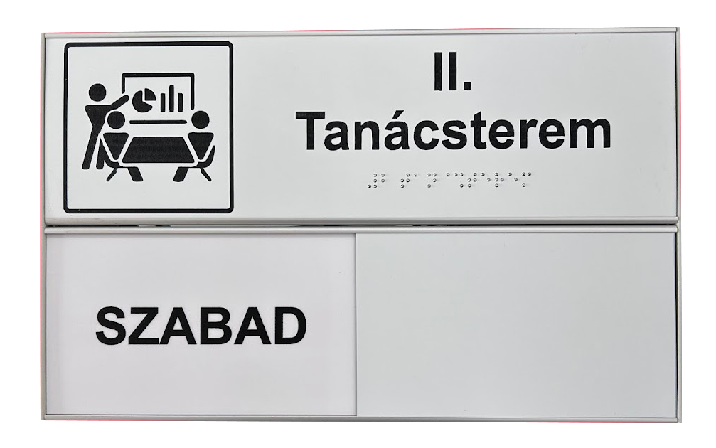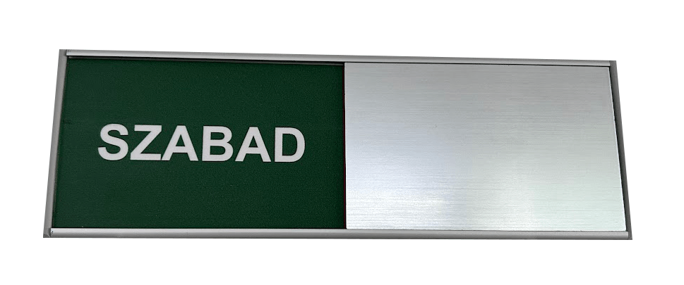 Az elhúzható foglalt–szabad jelző tábla ideális választás tárgyalók, irodák és rendelők számára, ahol fontos a helyiségek aktuális állapotának egyértelmű jelzése. A modern kialakítású, alumíniumból készült ajtójelző egyszerűen kezelhető, jól látható és egyedi igények szerint – akár több nyelven is – testreszabható.