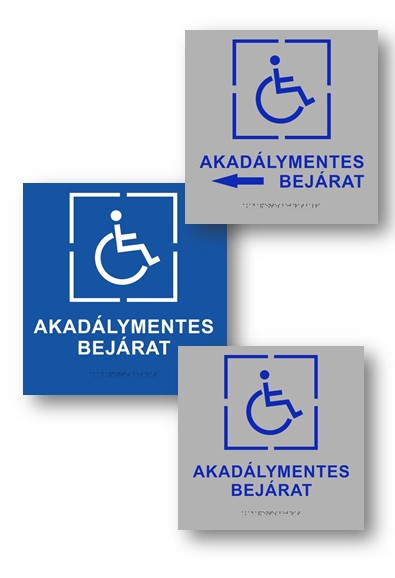 Akadálymentes bejáratot jelző információs tábla Braille felirattal, 40x40cm méretben