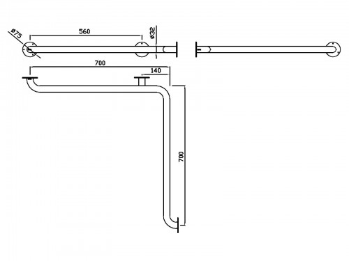 Vízszintes sarok kapaszkodó, 90°-ban hajlított 700x700 mm: