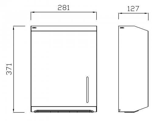 Hajtogatott papírkéztörlő adagoló lapvastagságtól függően 400/600 db C, Z és V hajtott papírtörlő tárolására képes. Vandálbiztos kivitelű, rendszerkulccsal zárható adagoló, nyitáskor az előlapja lefelé nyílik. Az előlap AISI 304 típusú rozsdamentes acél, vastagsága 0,8 mm, a hátlap 0,7 mm vastag. Az papíradagoló előlapján szintmérő nyílások találhatók, mellyel könnyen ellenőrihető, milyen telítettségű a tartó.